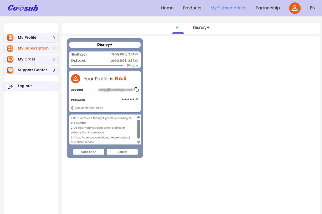 Non si tratta di una semplice bacheca tra privati: Coosub acquista, configura e gestisce direttamente gli abbonamenti ai principali servizi e assegna a ciascun utente un profilo dedicato con accesso tramite credenziali fornite nel pannello “My Subscriptions”.