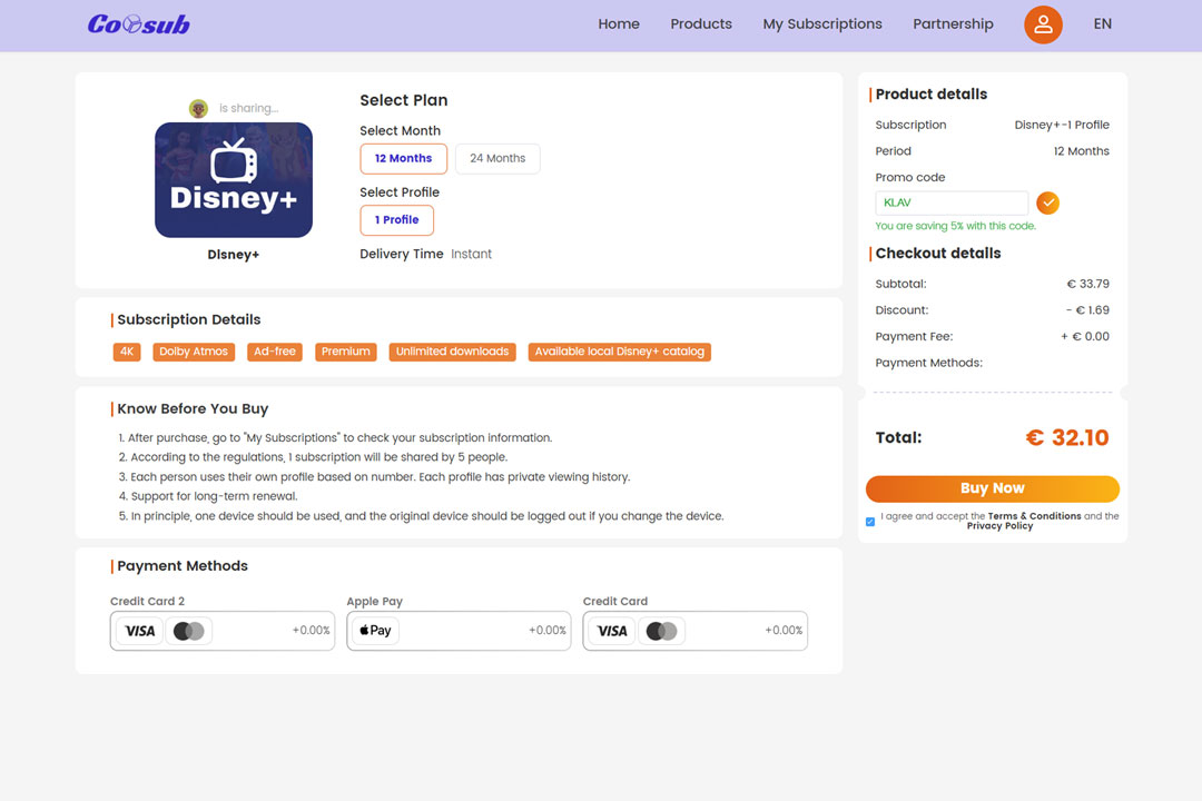 Con Coosub è possibile accedere a servizi digitali condivisi a una frazione del prezzo ufficiale, grazie alla divisione dei profili e all’organizzazione centralizzata degli abbonamenti. Inoltre, è possibile risparmiare un ulteriore 5% o 6% sul totale utilizzando i codici sconto attivi.